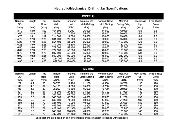 Double Acting Hydraulic/Mechanical Drilling Jar Specifications
