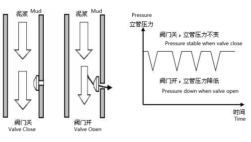 Negative mud pulse generator will need to be installed in the special non-magnetic short section to use, opening the discharge valve of negative mud pulse generator , allow the mud within the drill string by the discharge valve and the non-magnetic drill collar hole on the discharge flow to the borehole annulus, thus giving rise to reduce mud stress internal drillstring , discharge valve movements are encoded by the probe measurement data through the drive control circuit implementation. On the ground through the continuous detection of changes in stress risers, and decoding into different measurement data.